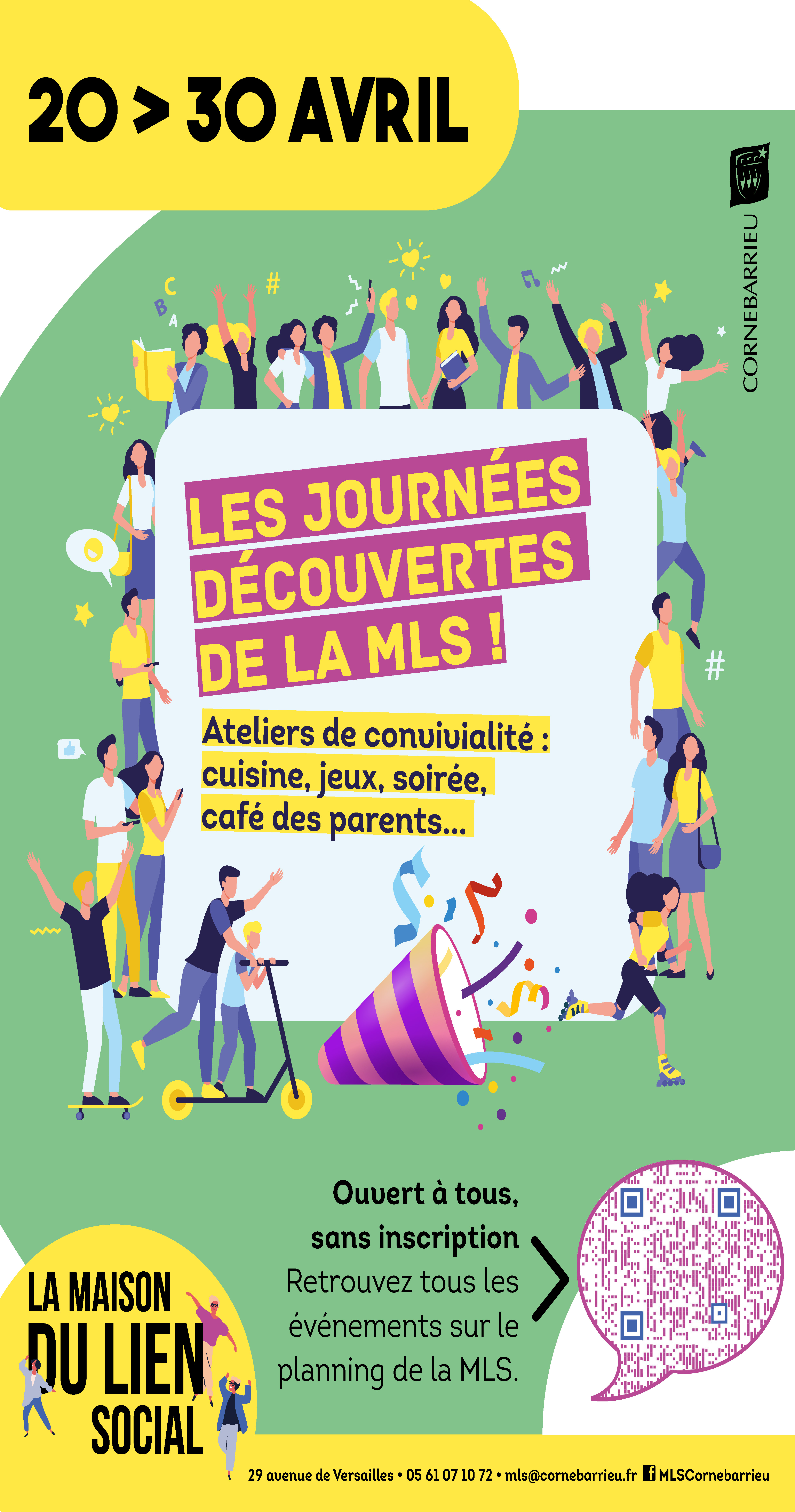 Vous avez entendu parler de la Maison du Lien Social sans jamais avoir franchi le pas… de sa porte ? Les vacances d’avril (du 20 au 30 avril) seront l’occasion de découvrir les activités, animations et ateliers  pour enfants et adultes.